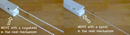普通窗帘例如百叶窗是靠珠链上下伸缩的,而普通的窗帘是靠绳索,内置的强劲齿轮转轴设计可以很好的卷动珠链或者绳索。下图是各种各样的珠链和绳索。