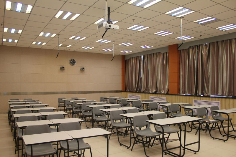 教室不能像办公室一样生硬和严肃,但是又不能失简洁。如果考虑到经济适用,素色遮光布是个不错的选择,有遮光遮阳、隔音防噪的效果,并且有垂感、环保、无异味又显得简洁。让学生能有安静、安全、舒适的学习环境。